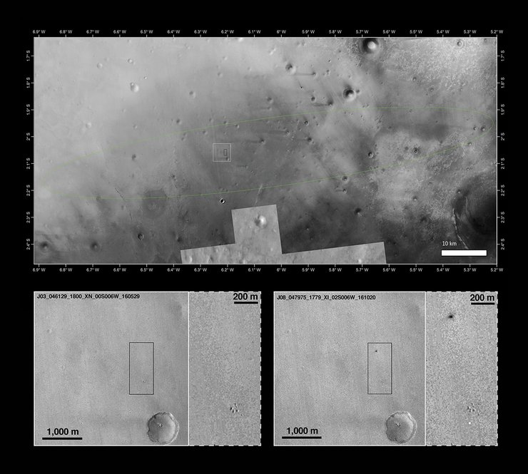 Снимки, сделанные с помощью орбитального аппарата NASA показывают, что спускаемый модуль Schiaparelli упал на поверхность Марса с большей высоты, чем планировалось, от двух до четырех километров и, вероятно, был разрушен при ударе. Об этом сообщает slon.ru со ссылкой на Европейское космическое агентство.