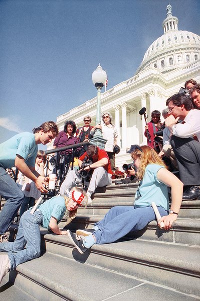 Место подвига. В США в 1990 году возле Капитолия люди с инвалидностью провели акцию, требуя принять закон, защищающий их права