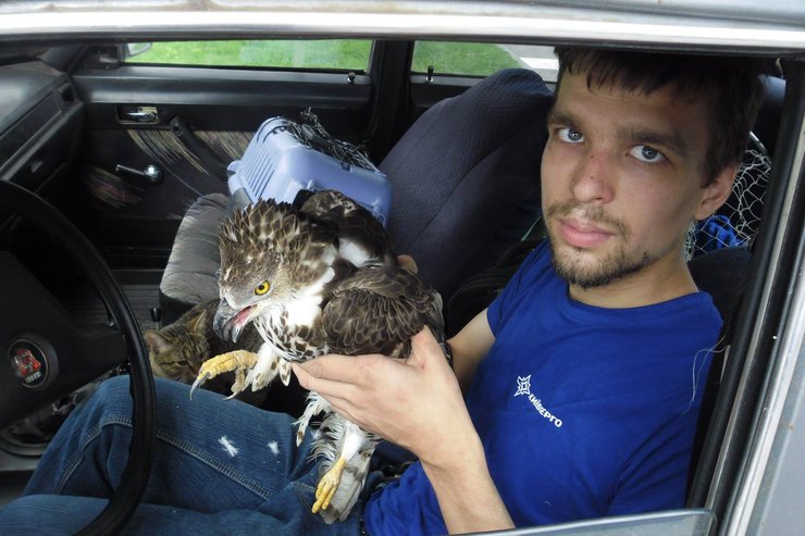 Спасателям поступает от трех до пятнадцати вызовов в сутки. Миша рассказывает, что самый напряженный период — конец весны — начало лета. В это время активно плодятся собаки и коты, из гнезд выпадают птенцы, так называемые слетки. Однажды двух взрослых аистов, построивших гнездо на электроопоре, убило током, остался слеток — его сняли со столба и доставили к орнитологам.