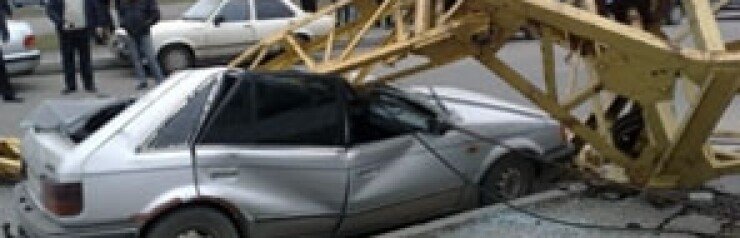 В Одессе на углу улиц маршала Жукова и 25-й Чапаевской дивизии 5 марта строительный кран упал на автомобиль марки «Мазда».