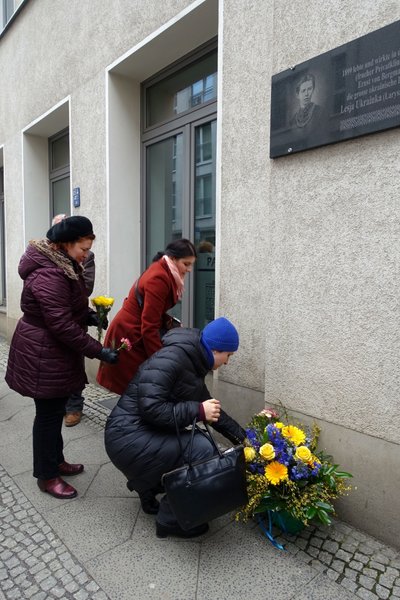 Украинцы Берлина 25 февраля собрались у мемориальной доски Лесе Украинке, чтобы вспомнить о выдающейся поэтессе, драматурге, переводчице в 146-ю годовщину со дня ее рождения и возложить цветы.