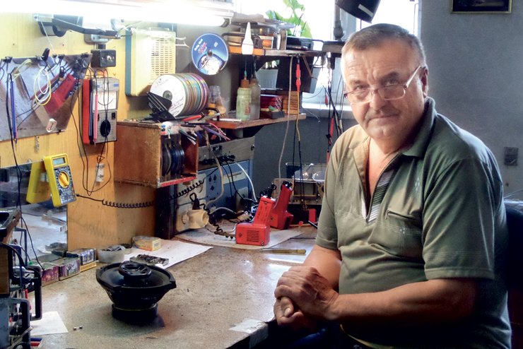 Владимир Заволока телемастер. Он 35 лет просидел в темноватой комнате телеателье Краматорска. Когда-то с огромной надеждой туда сносили десятки телевизоров, радиоприемников и проигрывателей. Мастер часами слушал их шипение, наблюдал серое дребезжание на экранах, а после долгой возни в микросхемах и деталях отдавал хозяевам вещь, которая снова радовала их трансляцией игры любимой команды или новым фильмом.