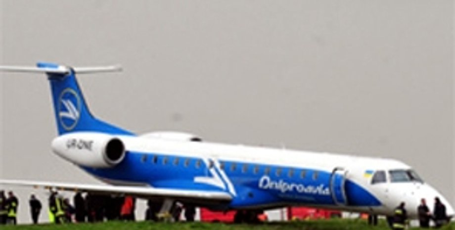 Как сообщает Associated Press, самолет Embraer ERJ145 принадлежал компании "Днипроавиа". Лайнер накренился на нос в нескольких метрах от посадочной полосы. По данным местных СМИ, шасси самолета увязло в грязи.