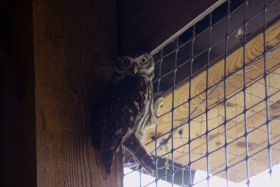 Домовой сыч Кузенька — самый маленький в семействе совиных. И самый любимый у Иры. Улетать не хочет, всегда возвращается обратно. Хотя людей боится — в вольере сразу забивается в дальний угол.