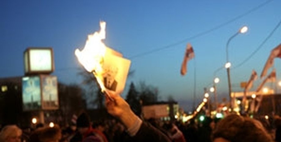 Белорусские оппозиционеры 25 марта в ходе акции протеста, приуроченной ко Дню Воли, сожгли на улицах Минска около сотни портретов Президента страны Александра Лукашенко.