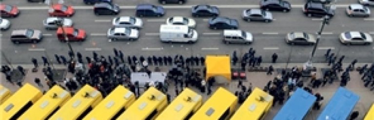Сегодня в центре Киева проходит акция протеста владельцев столичных маршруток. Они недовольны политикой мэра Киева Леонида Черновецкого в сфере транспорта и требуют встречи с Президентом.