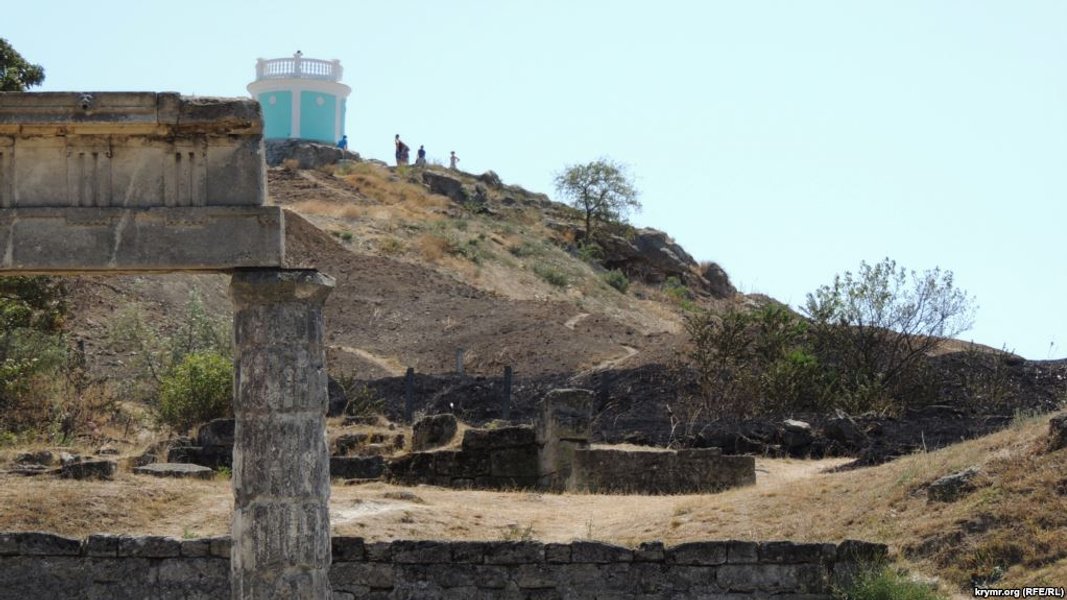 Огонь уничтожил растительность в районе места проведения раскопок древнего городища, а также рядом с развалинами Акрополя, которые являются самой популярной достопримечательностью и одной из "визитных карточек" Керчи.