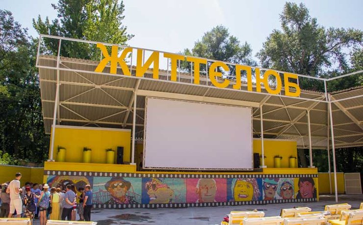 Раньше тут стоял заброшенный кинотеатр. Его отреставрировали благотворительный фонд "Жизнелюб", "Крамалл Студио", активисты клуба "Жизнелюб" и волонтеры. Проект лично курировал писатель и бизнесмен Гарик Корогодский. Несколько месяцев технических работ, 9 млн грн и несметное количество идей и энергии превратили разбитую площадку в солнечное арт-пространство.