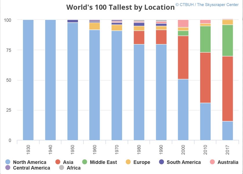 В 2017-ом в мире было построено 144 небоскреба высотой более 200 м