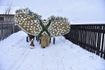 Работать медведем, жиданом или цыганом нелегко. Вес соломенных костюмов, по словам их обладателей, достигает 40-50 кг. Поэтому медведи периодически отдыхают, садясь или ложась на землю. Самостоятельно крылатому медведю не встать, его поднимают и сажают один-два помощника.