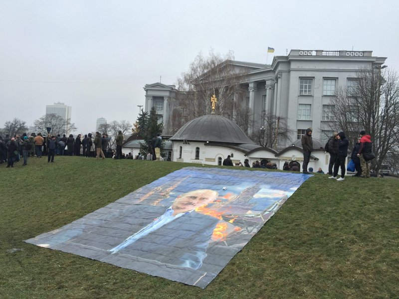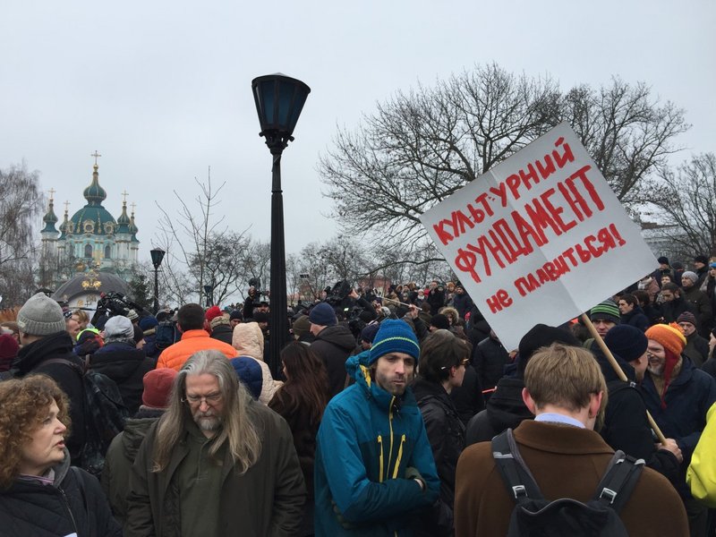 В центре Киева возле Национального музея истории Украины (ул. Владимирская, 2) около сотни активистов проводят акцию в поддержку арестованных архитекторов Александра Горбаня и Алексея Шемотюка, которых подозревают в попытке поджога в ночь на 25 января религиозного сооружения Украинской православной церкви Московского патриархата.