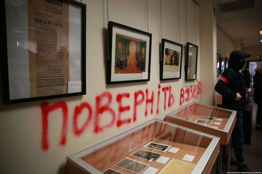 Активисты заявили, что это был "перформанс с целью привлечения внимания к функционированию в Украине откровенно пророссийской организации"