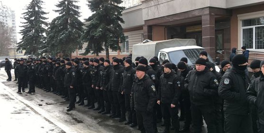 Во вторник, 20 февраля, около сотни полицейских полка полиции особого назначения устроили акцию протеста под зданием Шевченковского суда Киева.