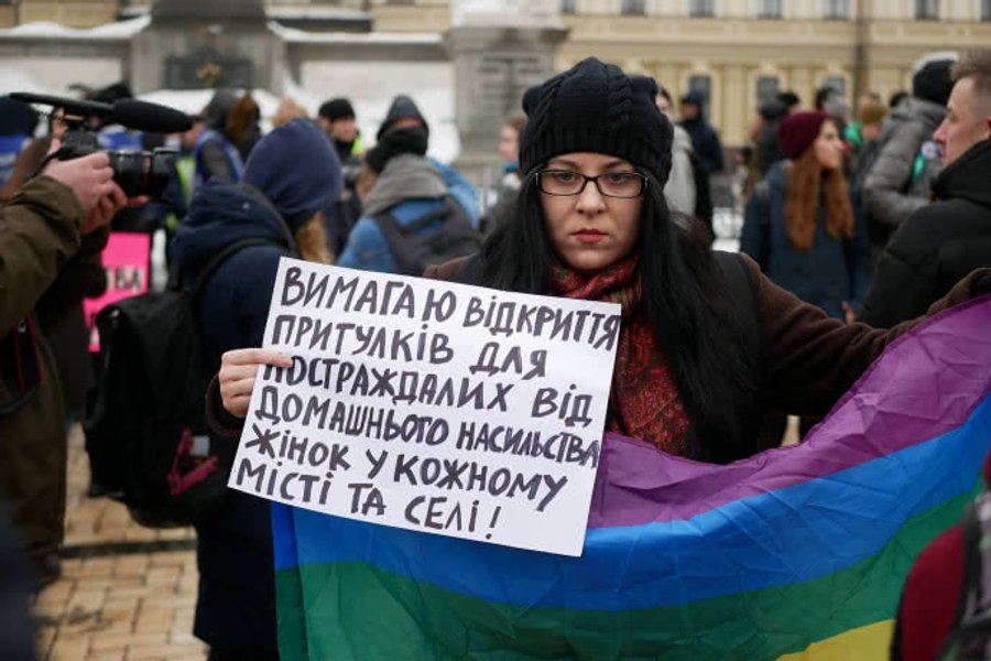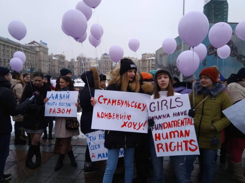Там также собрались участницы другого марша - "Хватит терпеть", которые требуют ратифицировать конвенцию о предотвращении насилия в отношении женщин.