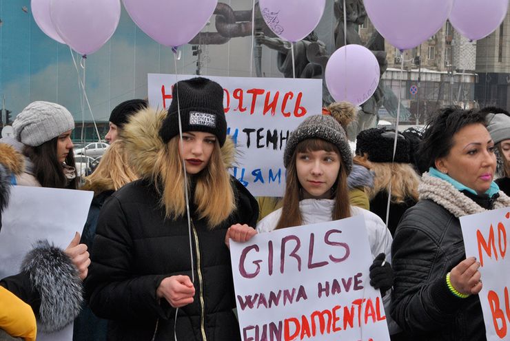 "Мы узнали случайно, что тут будет проходить митинг за права женщин, против угнетения. Мы пришли узнать, чем же их так угнетают. И почему мы не чувствуем себя угнетенными. Мы пришли пообщаться, найти диалог, взаимопонимание. Мы не из какой-то организации, мы просто пришли высказать свою гражданскую позицию", - рассказывает 18-летняя Анна, студентка НАУ. Уверяет, что она и ее "соратницы" исключительно мирные и не хотят никаких конфликтов.