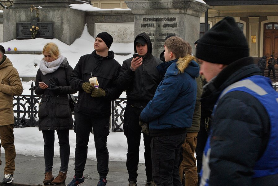 У киевских массовых акций есть одна традиция: здесь всегда можно увидеть нескольких парней, которые не участвуют в мероприятии, а стоят группкой чуть поодаль. По странному совпадению, они чаще всего попадают на фото и видео разных провокаций и потасовок.