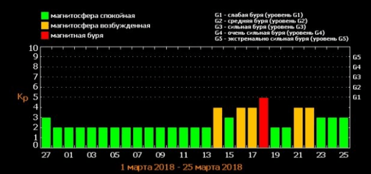 На данный момент им присвоен класс G1, то есть самый низкий по пятибалльной шкале интенсивности магнитных бурь.