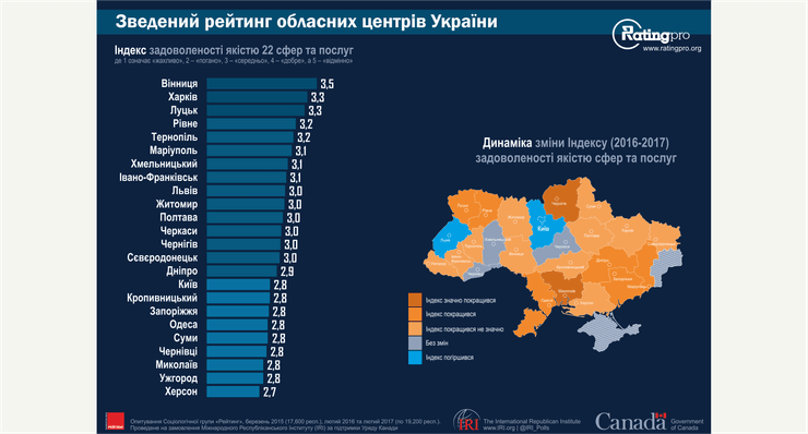 Выведя среднюю оценку, социологи составили рейтинг, в котором на первом месте оказалась Винница с оценкой 3,6.