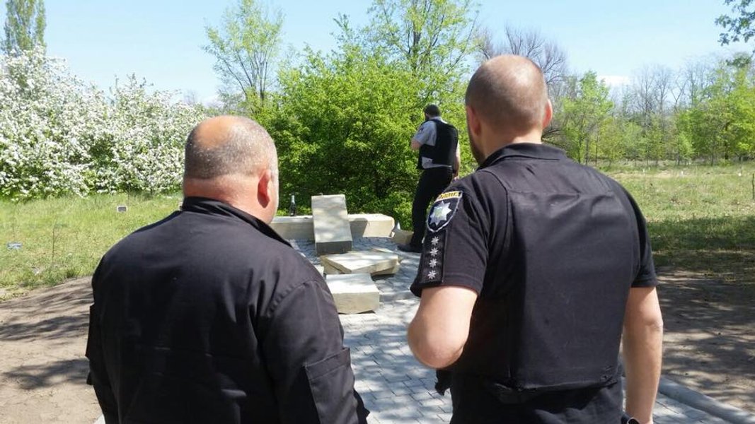 "Сегодня ночью на Хортице вандалы уничтожили памятник "Борцам за волю Украины 1918-2018 годов", которые погибли, защищая украинскую землю. Приехав на место происшествия сегодня утром, мы увидели разбитую памятную табличку и разбитый крест", - говорится в сообщении.