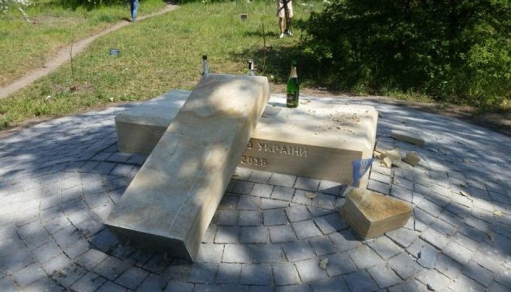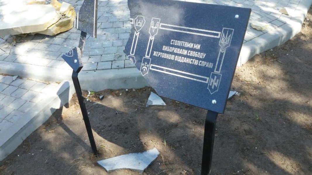 На острове Хортица в Запорожье вандалы разрушили памятник борцам за волю Украины 1918-2018 годов, установленный неделю назад.