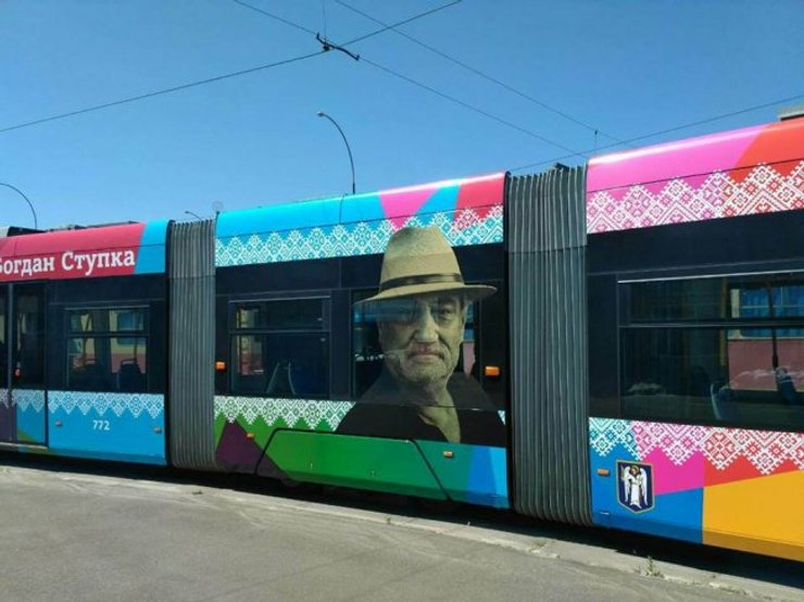 В Киеве в вечерний "час пик" на маршруты скоростной линии выходят трамваи, посвященные архитектору Владиславу Городецкому и актеру Богдану Ступке.