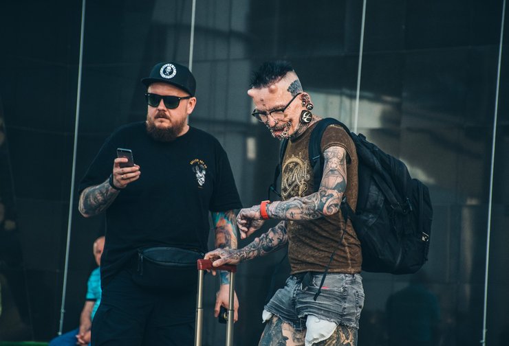 В Киеве прилетел на тату-фестиваль самый пирсингованный человек в мире Рольф Бухгольц, сообщает Информатор.