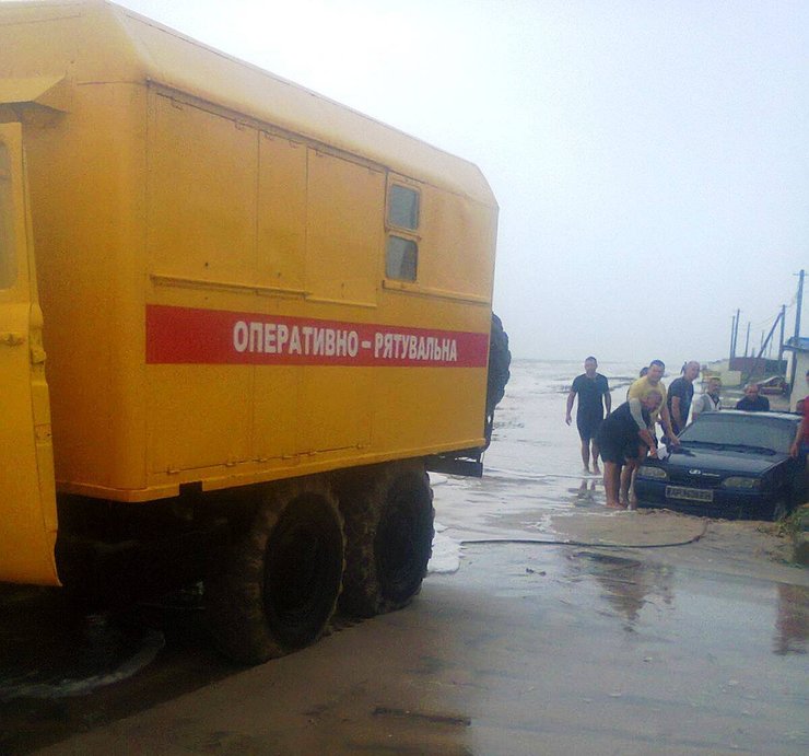 На побережье Азовского моря в городе Приморск и на косе Обиточная из-за ухудшения погодных условий, которые привели к размыву дороги и образованию промоин, спасатели вытянули 36 автомобилей и спасли 86 человек, из них 9 детей.