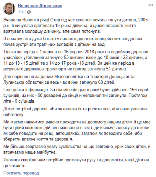 Об этом на своей странице в Facebook написал первый заместитель председателя Национальной полиции Украины Вячеслав Аброськин.