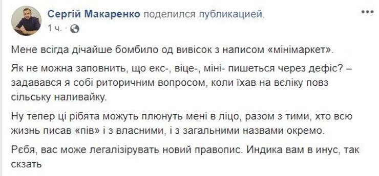 По его словам, языковеды стремились вернуть в повседневный обиход нормы украинского языка, которые пытались ввести на Всеукраинской конференции по правописанию в Харькове (1927 года, период "украинизации") и которые характерны для разных регионов страны.