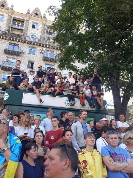 После завершения официальной части празднества на Крещатике и Майдане Незалежности остались сотни и сотни людей. Они слушали военный оркестр, ели мороженое и устраивали на газоне импровизированные пикники.