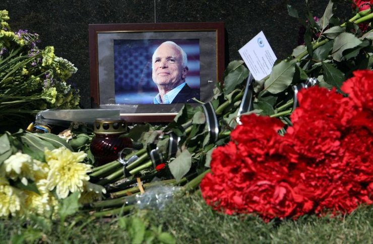 В Киеве к посольству США принесли цветы в память о Джоне Маккейне
