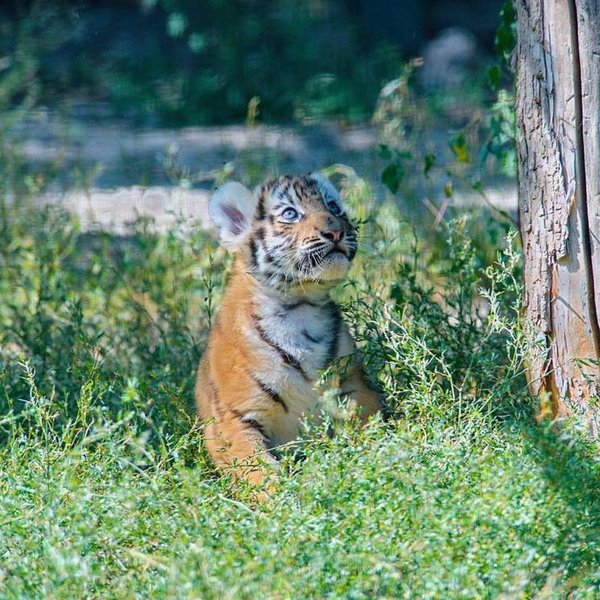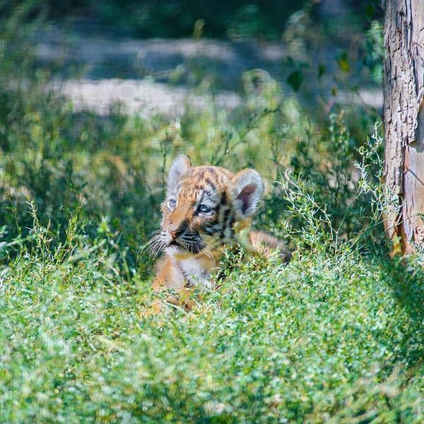У тигров Далилы и Банзая родились два мальчика и две девочки, сообщают в парке. Малыши вместе с мамой находятся в своем домике, из которого время от времени выходят в вольер на прогулку.