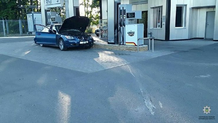 В Харькове на Окружной дороге водитель BMW во время полицейской погони протаранил микроавтобус, после чего влетел в автозаправочную станцию.