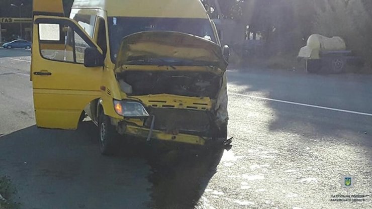 На Салтовском Шоссе нарушитель зацепил микроавтобус Mercedes-Benz и врезался в АЗС.