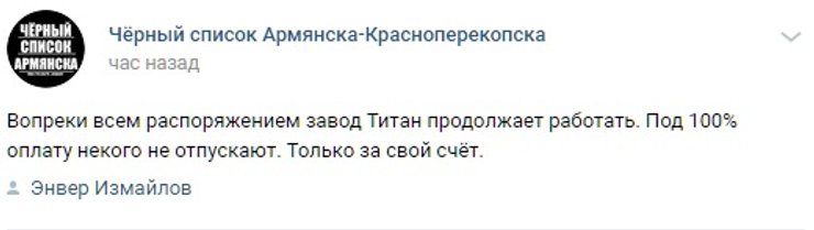 Люди пишут, что завод "Титан" все еще работает. А с государственных предприятий никого не отпускают.