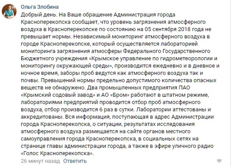 Городские власти Красноперекопска упрямо заявляют, что "уровень загрязнения воздуха в пределах нормы"