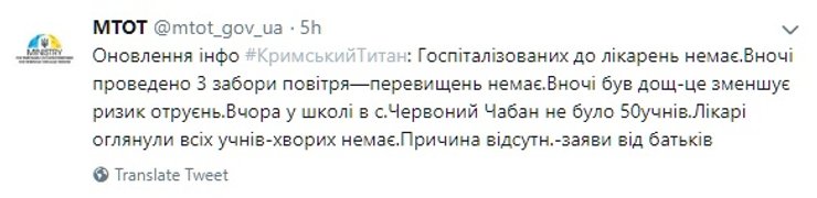Министерство по вопросам временно оккупированных территорий Украины сообщает, что превышения вредных веществ в воздухе не обнаружено.