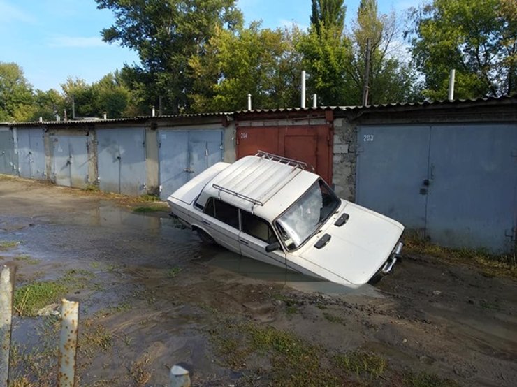 В Харькове на территории гаражного кооператива на улице Морозова легковой автомобиль ВАЗ-2103 провалился в яму.