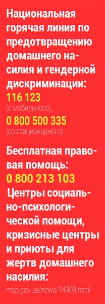— Впервые в нашем государстве домашнее насилие приобрело правовое значение, — отмечает чиновница. — Мы дали больше инструментов влияния органам Национальной полиции. Теперь у них есть специальные принудительные меры, которые позволяют сразу реагировать на такие сообщения.