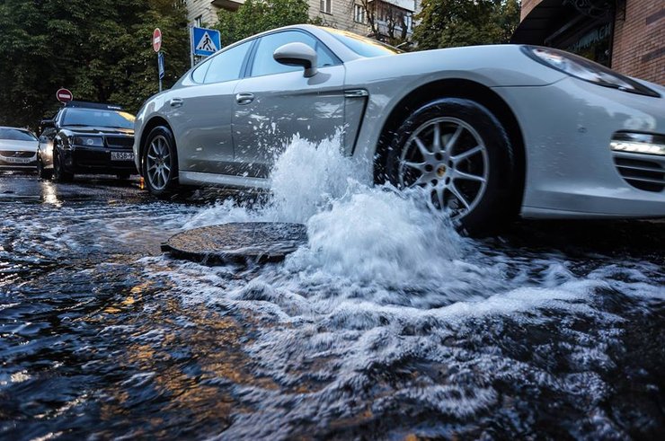 В среду, 19 сентября, в Печерском районе Киева на улице Гусовского, 11 прорвало трубу, из-за чего из канализационного люка стал бить "фонтан" воды.