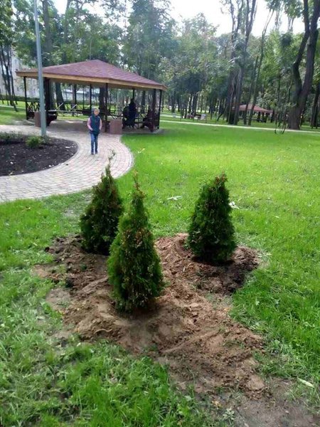 "На прошлой неделе в парке "Сырецкий" работники КП Шевченковского района столицы высадили туи, которые должны были украшать обновленный парк. На выходных их уже не было - выкопали за ночь", - говорится в сообщении.