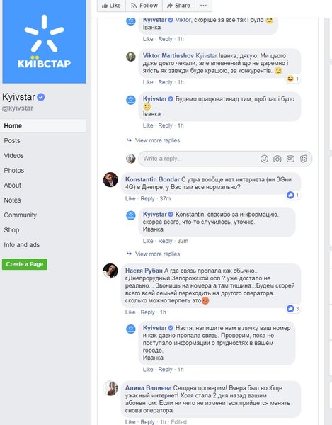 Об отсутствии мобильного интернета Киевстар сообщают жители Киева, Сум, Днепра и Запорожской области. Они оставляют комментарии на странице мобильного оператора в Facebook.