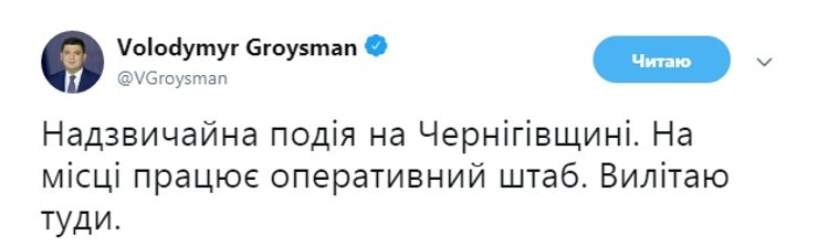 Возле Ични в Черниговской области продолжаются взрывы на военной базе. К месту события вылетел премьер-министр Гройсман, об этом он сообщил на Twitter.