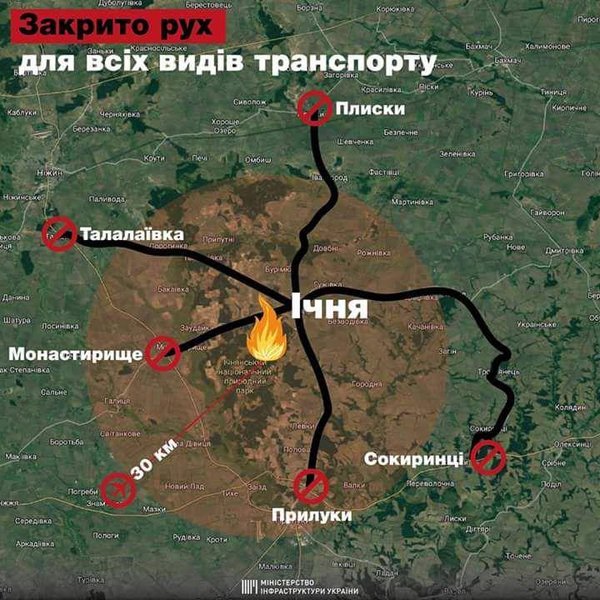 Полиция Черниговской и соседних областей обеспечивает безопасность на территории Ични и близлежащих населенных пунктов, из которых эвакуируется население в связи с пожаром на 6 арсенале Минобороны. Об этом сообщает пресс-служба Нацполиции.