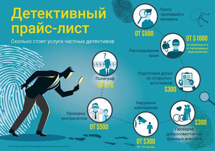 Слежка за супругом, выведение детей-шалопаев из плохих компаний и проверка бизнес-партнеров — все это входит в базовый набор того, чем занимаются украинские детективы-консультанты. И если переименование может снять вопросы по поводу законности предоставляемых услуг, то из-за неурегулированности такой деятельности, все собранные "консультантами" доказательства все равно не могут рассматриваться в суде. Да и правоохранители вместо того, чтобы сотрудничать с сыщиками, чаще всего препятствуют их работе. Именно поэтому еще в 2012 году детективные агентства стали лоббировать принятие закона о частной сыскной деятельности.