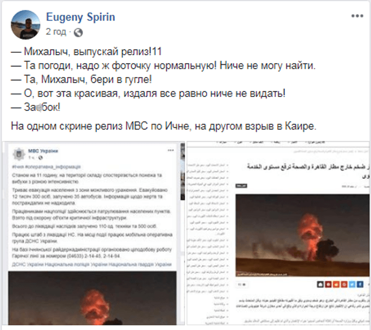Редактор Facebook-страницы МВД Украины, вероятно, просто выбрал в Google-картинках одну из первых попавшихся фотографий для иллюстрации взрыва