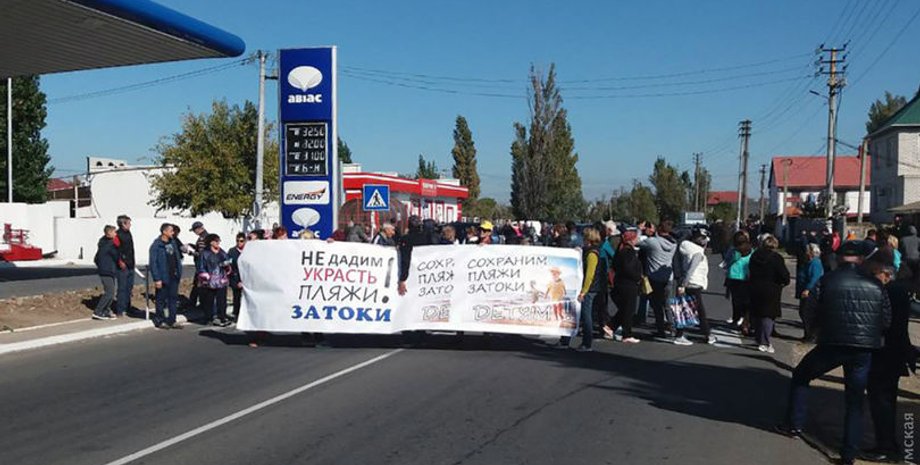 В Затоке Одесской области местные жители перекрыли трассу Одесса – Белгород-Днестровский, протестуя против решения сельсовета о раздаче земельных участков в прибрежной зоне.