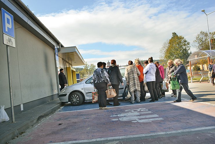 Центр города, конечно, — не основное "место работы" украинских челночников. Массово их можно наблюдать возле любимой нашими согражданами "Бедронки" (Biedronka — крупная сеть супермаркетов в Польше). Перед магазином просторная автостоянка, украинцы кружат по ней в поисках своего покупателя. Когда подхожу, на стоянке толпится не менее 20–25 женщин примерно одного возраста — лет 50–60. Шумную компанию разбавляют трое мужчин, которые держатся особняком. Только пришедших приветствуют традиционной для Западной Украины фразой "Слава Ісусу Христу!".