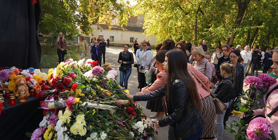 У тротуара недалеко от колледжа установили импровизированный мемориал. Весь день туда с цветами, игрушками и лампадками группами и поодиночке направлялись горожане. Здесь люди также продолжали обсуждать, комментировать журналистам случившееся, строить свои версии о причинах трагедии.