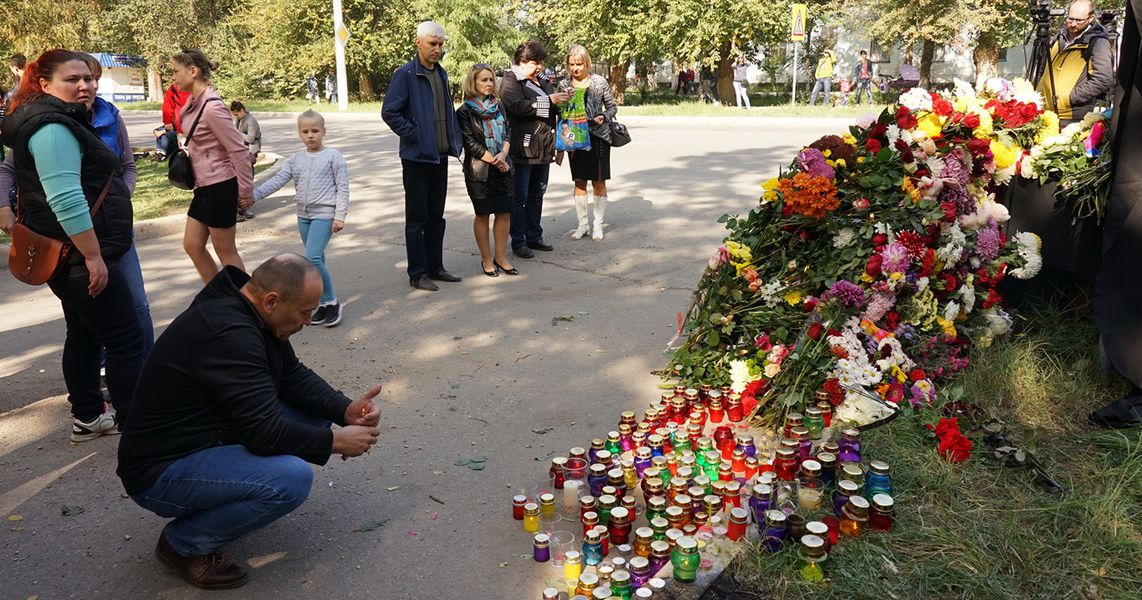 Главные траурные мероприятия в городе проходят на улице Войкова, где находится отныне печально известный политехнический колледж, в прошлом базовое ПТУ местного металлургического предприятия имени Войкова